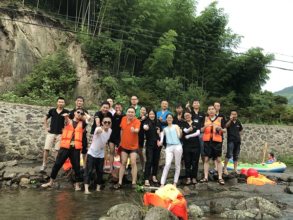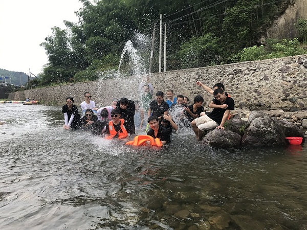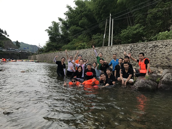 整个行程共计1天。一路上员工们欢声笑语、气氛活跃。午餐后,大家一起体验了四明山第一漂——北溪漂流群山环抱,一溪中流,溪水曲折,左冲右突,跌宕起伏,落差适宜,张合有度,奇石幽潭遍及全程整个行程持续2个多小时,可以让人充分领略到溪道两旁红枫樱花群芳争妍、竹木幽篁摇撩清风及唐诗石刻透露出的古朴风韵,漂流沿途还有蒋介石曾数次驻足停留的积善桥等人文胜景。员工们在漂流时你追我赶、激流勇进,疯狂打水仗。打水仗,人越多越好玩。这里处处都是战场,每天都是泼水节,无论你们是否相识,开战就是见面礼。战斗力较差的女生们,只能抱头尖叫不玩;男生呢,则玩得不亦乐乎,只差没栽进水里。水仗过后,皮艇又开始往下漂……快到终点处了,满以为惊险刺激已经结束,可是一个转眼间,还有两处大落差还在等着呢!这便是飞水的漂流,惊喜总不断。